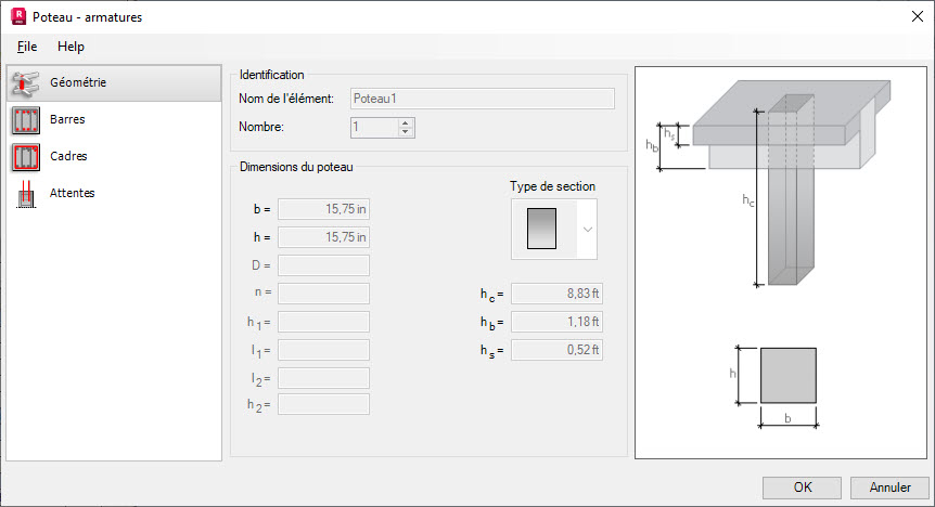 Poteau - armatures - lancé depuis Autodesk Robot Structural Analysis