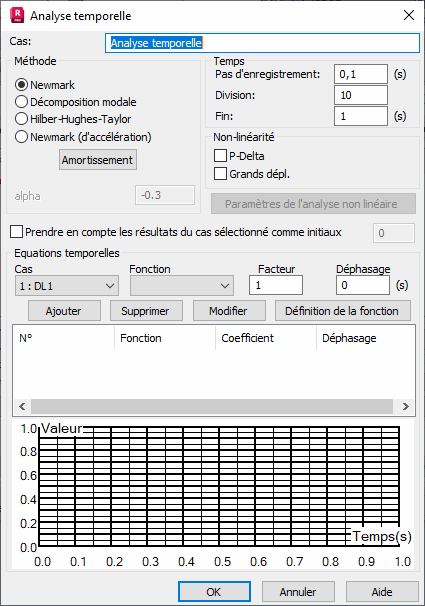 Coefficient - Coefficient multiplicateur de la valeur de la fonction temporelle pour un cas de charge donné, la valeur par défaut du coefficient est 1.0.