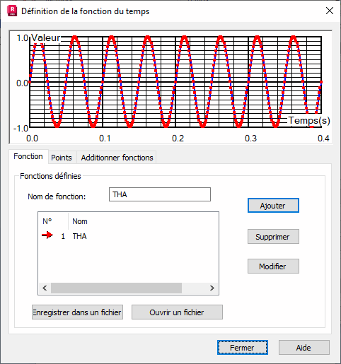 Cette boîte de dialogue contient trois onglets : Fonction, Points et Additionner fonctions.
