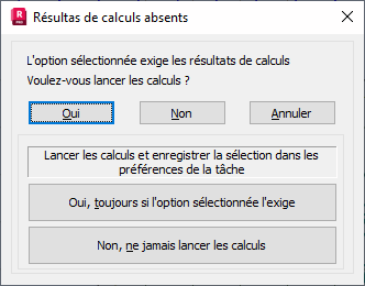 Ces options comprennent les tableaux de résultats et les boîtes de dialogues permettant de sélectionner des cartographies et des diagrammes. Avant de lancer les calculs, le logiciel affiche la boîte de dialogue suivante :