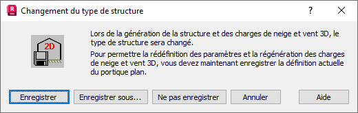 Remarque : Robot exige que le projet soit enregistré après le changement du type de la structure. Par conséquent, si un portique 2D n'a pas encore été nommé, Robot ouvre la boîte de dialogue Enregistrer sous. Une structure 3D est enregistrée sans les charges 3D.