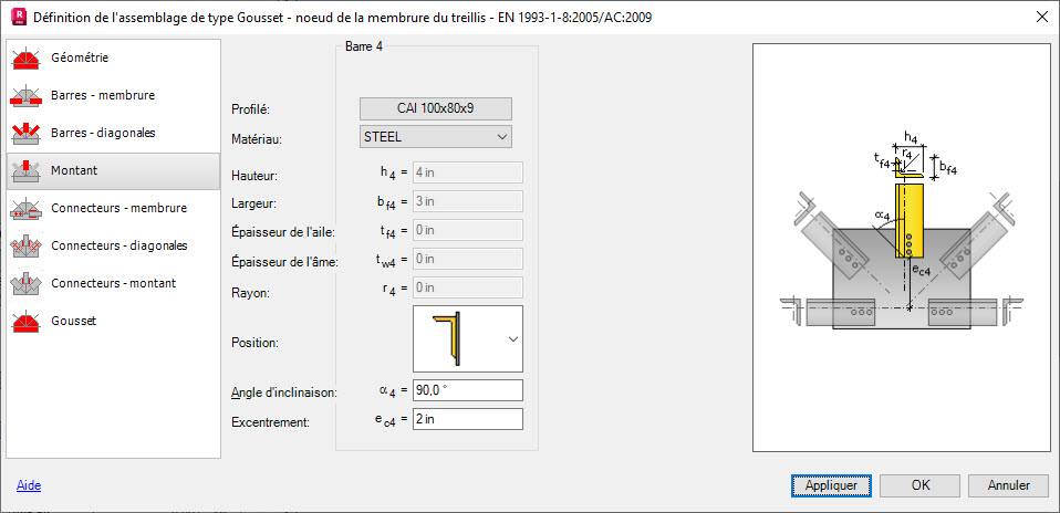 L'onglet Montant comprend les options permettant de définir les principaux paramètres du montant aboutissant au gousset :