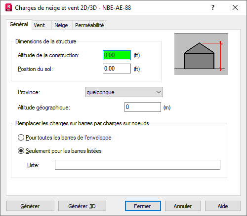 Après l’ouverture de la boîte de dialogue Charge de neige et vent et un clic sur l’onglet Général, la boîte de dialogue suivante s'affiche.