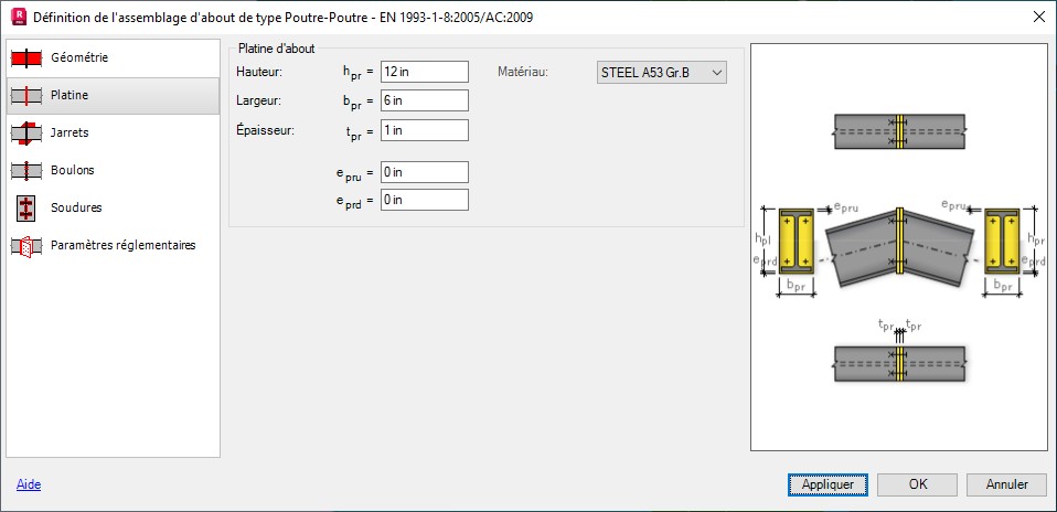L'onglet n'est disponible que pour les assemblages boulonnés.