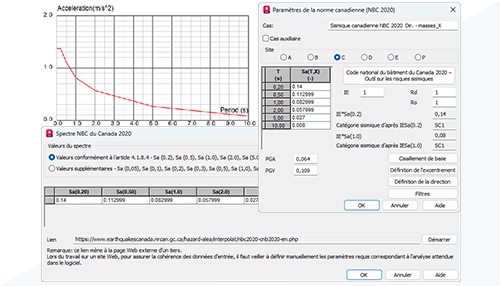 La norme canadienne actuelle NBC 2020 a été mise en œuvre pour l'analyse sismique.