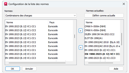 La norme EN 1990:2023 (8.12) VC1 CC2 est spécifiée par défaut dans les paramètres régionaux européens.