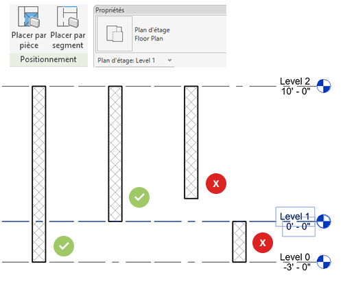 Créez des murs finis dans une pièce à l’aide d’un segment de mur ou dans les limites d’une pièce.