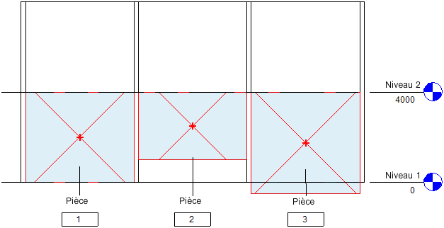 Une valeur positive pour un décalage de base peut être utilisée uniquement lorsque la hauteur de calcul du niveau associé de la pièce est également une valeur positive. Le décalage de base de la pièce ne peut pas dépasser la hauteur de calcul du niveau associé. Par exemple, dans l'exemple ci-dessus, le décalage de base de la pièce 2 est 1 000. La hauteur de calcul du niveau 1 doit être 1 000 ou plus pour que cela soit possible.