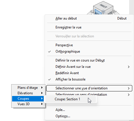 - Dans une vue 3D, cliquez avec le bouton droit de la souris sur l'outil ViewCube.