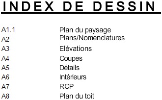 Une liste des feuilles peut servir de table des matières pour un jeu de documents de construction.