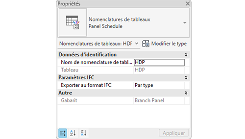 Certains paramètres d’équipement électrique peuvent permettre de regrouper, trier et filtrer des nomenclatures de tableaux.