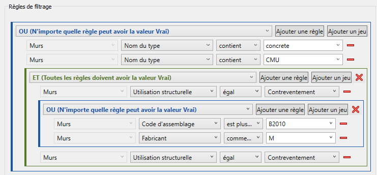 Si vous souhaitez sélectionner plusieurs valeurs pour un même paramètre, ajoutez une règle pour chaque valeur. Imbriquez ces règles sous un jeu de règles avec une condition OU.