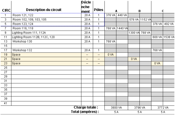 Cette procédure permet de redistribuer les charges dans une nomenclature de tableaux afin d’égaliser autant que possible les charges pour chaque phase. Vous pouvez également rééquilibrer uniquement un sous-ensemble de charges en verrouillant les emplacements que vous souhaitez exclure.