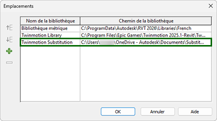 Revit 2025.2 ou ultérieur définit le chemin de la bibliothèque de substitution à la version compatible installée de Twinmotion.
