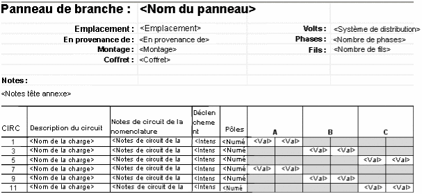 Dans le gabarit illustré ici, les paramètres En-tête et Notes de circuit ont été ajoutés. Notes de circuit de la nomenclature est ajouté sous la forme d’une colonne.
