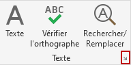 Certains groupes de fonctions permettent d'ouvrir une boîte de dialogue pour définir les paramètres associés. Une flèche de lancement de boîte de dialogue
