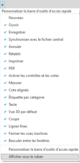 La barre d'outils d'accès rapide contient un jeu d'outils par défaut. Vous pouvez personnaliser cette barre d'outils pour afficher les outils que vous utilisez le plus souvent.