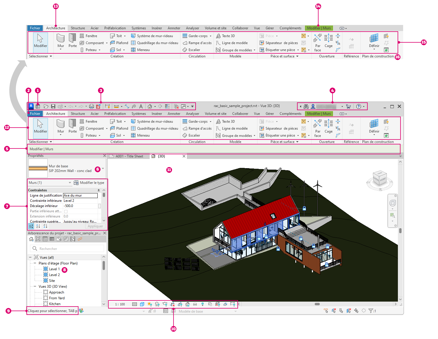 | 14 | Onglet contextuel du ruban fournissant des outils relatifs à l'objet sélectionné ou à l'action en cours |