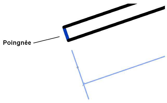 Poignée de la forme (affichée en bleue) dans une vue d'élévation