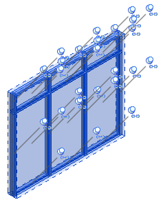 Meneaux : les familles de meneaux sont placées sur les lignes de quadrillage et les bordures du mur-rideau. La famille de profils utilisée par la famille de meneaux détermine la forme et la taille des meneaux.