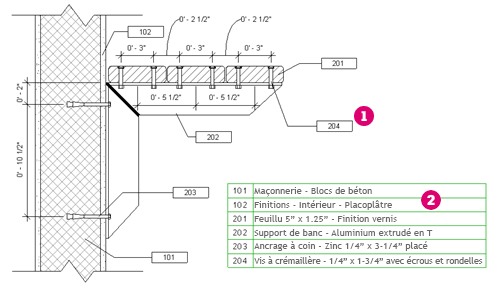 Lorsque la CAO est apparue, il était moins nécessaire d’ajouter des notes d’identification, car le placement et la modification du texte étaient plus faciles. Les notes d’identification n’étaient pas été autant utilisées, car elles peuvent prêter à confusion lors de la lecture d’un dessin. En cas de placement de la note textuelle directement à côté des éléments d’un dessin, une personne lisant le dessin n’avait pas à regarder la légende pour trouver la valeur. Étant donné que les workflows et les données BIM font maintenant partie de chaque famille Revit, vous pouvez à nouveau consulter les notes d’identification.