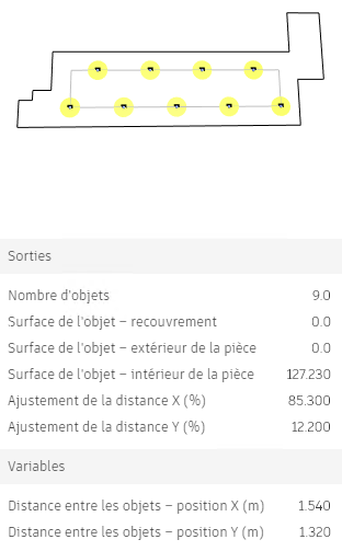 En fonction de ces résultats, la disposition optimale comporte neuf tables en deux lignes.