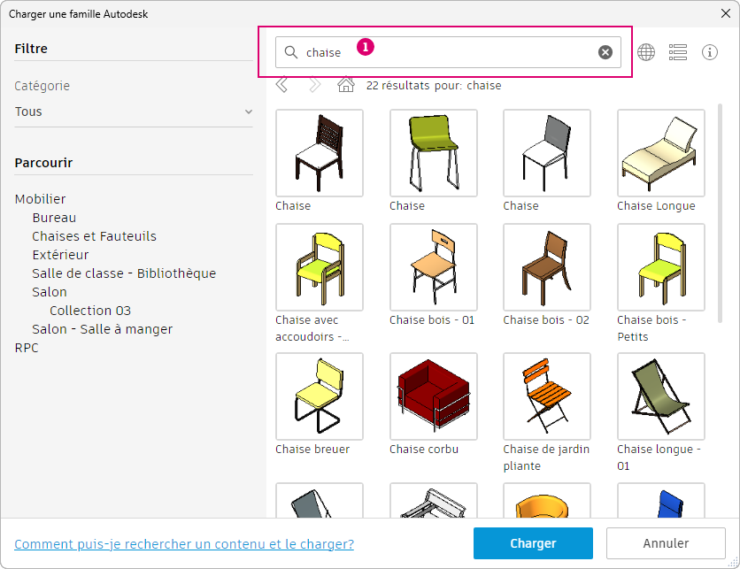 Recherchez et chargez des exemples de familles Autodesk à partir du cloud.