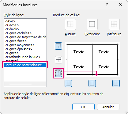 Bordures dans le ruban. Dans la boîte de dialogue Modifier les bordures, sélectionnez le style de ligne et cliquez sur le bouton correspondant à l’emplacement où vous souhaitez appliquer le style de ligne. Dans cet exemple, le style de ligne le plus large est appliqué uniquement à la bordure inférieure.