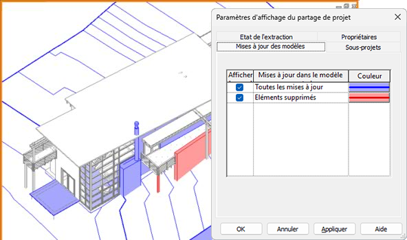 Les modes d’affichage du partage de projet vous permettent de voir l’état des différents éléments dans votre modèle partagé.