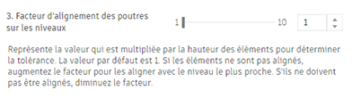 Ajustez ce facteur pour spécifier jusqu’où l’outil d’automatisation doit rechercher un niveau sur lequel la poutre analytique sera projetée.
