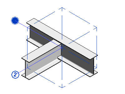 La coupe est créée au niveau de l’intersection. La sous-connexion entre les éléments est représentée par un cube en pointillés. Vous pouvez cliquer sur le symbole du losange situé sous l’étiquette numérotée pour modifier la coupe de l’élément à l’aide de l’outil Couper par.