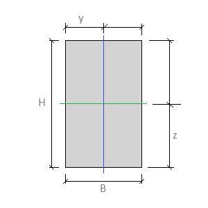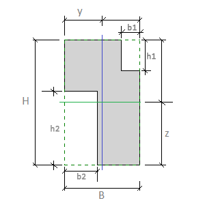 z. Centre de gravité vertical : distance entre le centre de gravité de la forme de coupe et les extrémités inférieures le long de l'axe vertical.