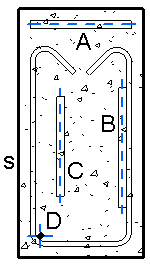 - Barre A : contraint sur l'enrobage d'armature au niveau de la surface supérieure de la poutre.
