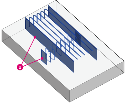Les segments d'armature basés sur une forme sont automatiquement contraints uniquement aux faces hôtes en béton qui se situent dans la plage de chaque segment : le segment passe par-dessus la face.