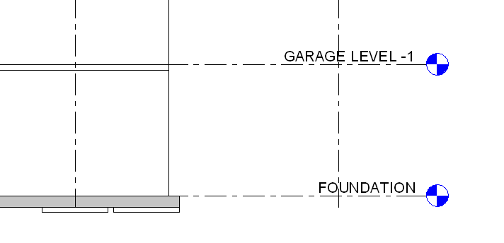 Remarque : Les radiers sont ajoutés en dessous du niveau auquel ils sont tracés. Dès lors, si vous ajoutez un radier au niveau 1, il apparaît en dessous de ce niveau et n'est pas visible dans la vue en plan correspondante. Pour afficher les radiers dans une vue en plan, créez un niveau sous le niveau 1 (par exemple, vous pouvez créer un niveau intitulé Fondations). Si vous créez un niveau sous le niveau 1, les radiers s'affichent dans le niveau 1, sous la forme de niveau en fond de plan (en demi-teinte).