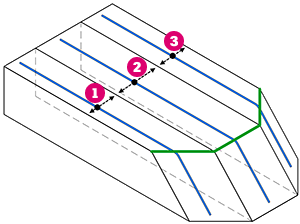 A l'image des arêtes de surface convexes et concaves, une armature de forme libre ne croise pas les arêtes de face hôte de deux segments de ligne droite ou plus.
