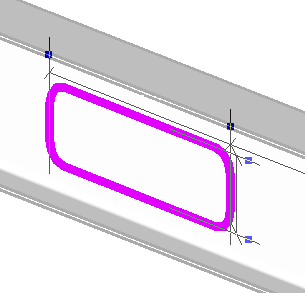 Lorsque vous esquissez une ouverture dans un élément structurel à l'aide de l'option de rectangle, vous pouvez spécifier un rayon afin d'esquisser des rectangles dotés de congés. Ainsi, l'ouverture ne présentera pas d'angles trop aigus, susceptibles d'être très contraignants.