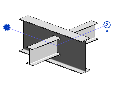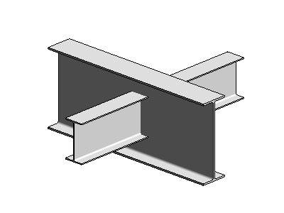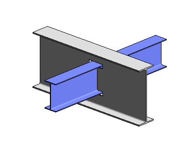 La recoupe est créée à l’intersection des éléments en acier. La soudure entre les éléments s’affiche sous forme de croix.