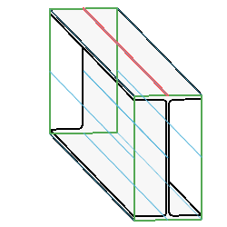 Dans la palette Propriétés, les paramètres Justification Y et Justification Z sont modifiés par rapport à la nouvelle justification de la géométrie physique de l'élément de structure. Dans cet exemple, les valeurs sont respectivement Origine et Gauche. Notez la manière dont la géométrie s'ajuste par rapport à la ligne de justification.
