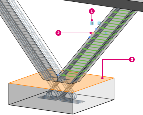 Pour définir les options d’alignement des jeux d’armatures de forme libre, utilisez le paramètre Alignement des barres dans la palette Propriétés de l’armature à béton.
