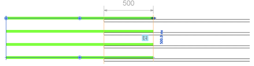Remarque : Par défaut, lorsqu'un segment de barre est contraint par rapport à un autre, les poignées de barre sont décalées à côté du segment cible à une distance de dégagement de 0.