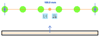- Pour déplacer le segment de barre contraint dans la direction positive (indiqué par la flèche qui apparaît sur la cible de la contrainte), saisissez une valeur de décalage positive. Une valeur négative déplacera le segment de barre dans la direction opposée.
