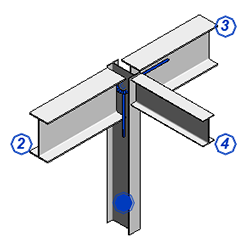 À moins qu'un assemblage structurel spécifique soit affecté, seul l'assemblage générique symbolique est disponible pour les détails de votre modèle. La connexion générique affiche les éléments connectés comme un cercle avec des segments de ligne rayonnant vers l'extérieur vers les éléments connectés.