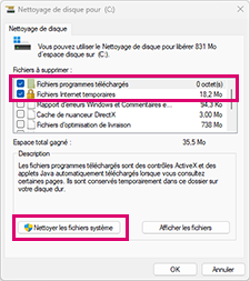 Lorsque le problème se produit, effacez les fichiers cache de collaboration, supprimez les fichiers temporaires Windows et exécutez le nettoyage de disque pour Windows en supprimant les fichiers Internet temporaires.
