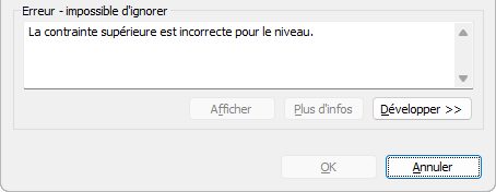 En cas d’erreur, Revit affiche des boîtes de dialogue pour signaler les problèmes.