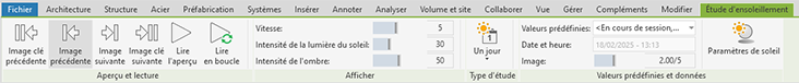 L’onglet Étude d’ensoleillement comporte quatre groupes de fonctions :
