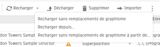 Utilisez les outils d’opération énumérés en haut de la page pour les actions souhaitées (par exemple, recharger avec ou sans remplacements de graphisme, décharger, supprimer, etc.). Ils sont générés dynamiquement en fonction du type et de l’état du fichier lié.