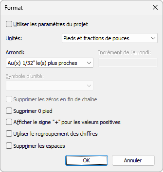 - Sélectionnez Supprimer 0 pied pour masquer les zéros placés au début des cotes, comme dans 0' 6". Cette option est disponible uniquement pour les pieds et les pouces.
