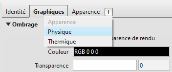 Remarque : Revit LT ne prend pas en charge les ressources physiques ou thermiques pour les matériaux. Les onglets Physique et Thermique n'apparaissent pas dans l'éditeur de matériaux, et certaines fonctionnalités décrites dans cette section ne s'appliquent pas à Revit LT.