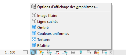 Pour définir l'arrière-plan d'une vue 3D, dans la barre de contrôle Vue, cliquez sur l'icône de style visuel et cliquez sur Options d'affichage des graphismes.